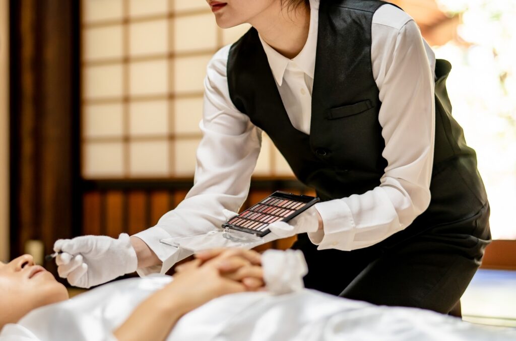 死化粧とは、故人様のお顔の血色を整え、髭剃りやヘアセットを行う整容工程のことを指します。